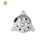 1. موتور الکتریکی: این بخش نیروی لازم برای چرخش پروانه را فراهم میکند. موتور الکتریکی فن شاهین از نوع DC بوده و با برق ۱۲ ولت باتری خودرو کار میکند.